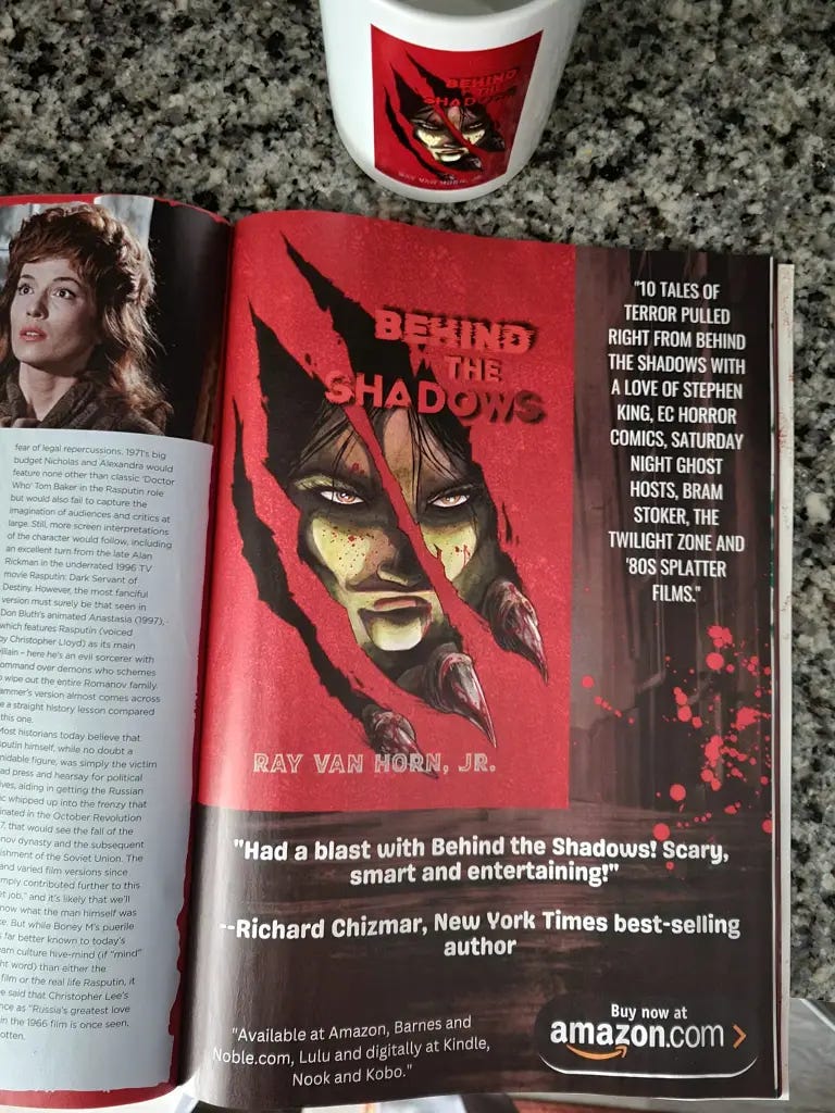 My promotion for Behind the Shadows was tiring but exciting. I printed up my own t-shirt with the cover, I had stickers and swag, including coffee mugs, as giveaways. I had print and video advertising. I had incredible testimonials from New York Times bestsellers Dayton Ward, Michael Jan Friedman and Richard Chizmar and other esteemed authors and comic creators.
