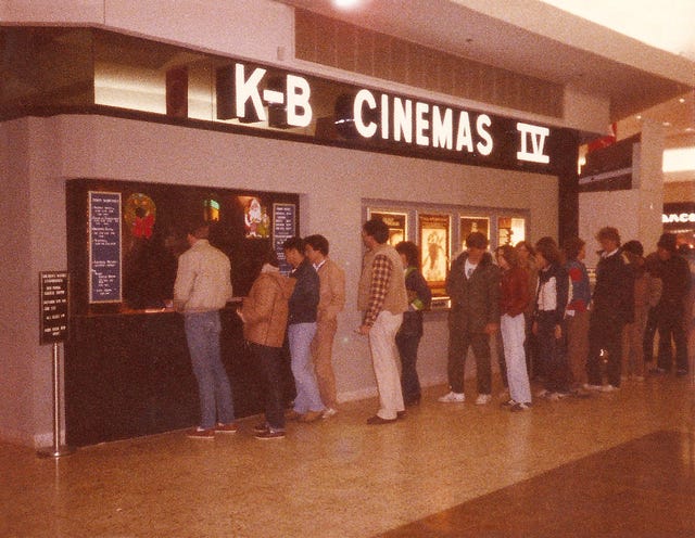 When I say teenagers of the day took over on opening night, we took over, including the parking lots. Without prompting or preamble, those with the swankiest IROC-Z Camaros, Trans-Ams and Super Coupes led an ongoing parade of lesser hotshot Chevettes, Spirits and Escorts that went on and on until the local fuzz busted it all up. Usually there was an unspoken, three-hour treaty from the police where they tolerated the drinking, toking and every rebellious activity that could’ve gotten you killed in the film you just watched. People shouted their thoughts about the film in transit, swapped dates, passed pizza slices and scalped concert tickets while driving in endless rotation. A tribal ritual today’s gadget-fixated youth could never comprehend.
